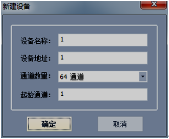 在“設備管理”區(qū)域內點擊鼠標右鍵,選中“添加設備”彈出如下圖2-3新建設備對話框,設備名稱可自命名,設備地址為下位機地址(可在下位機系統(tǒng)設置界面中查詢),根據(jù)需要選擇相應的通道數(shù)目和起始通道(默認起始通道為1)。當通道數(shù)目大于64或者需要將通道分成不同的類,可以各類通道掛在不同的設備上。如前8個通道測量溫度,后8個通道測量濕度并且想把他們以不同的窗口顯示出來,可以按一下操作進行:1)建立一個新的8個通道的設備,設備名稱->設備地址為1 ->通道數(shù)量8通道->起始通道1;2)再建立一個8通道的設備,設備名稱->設備地址為1 ->通道數(shù)量8通道->起始通道9。以上是對于同一臺儀器不同通道的操作。